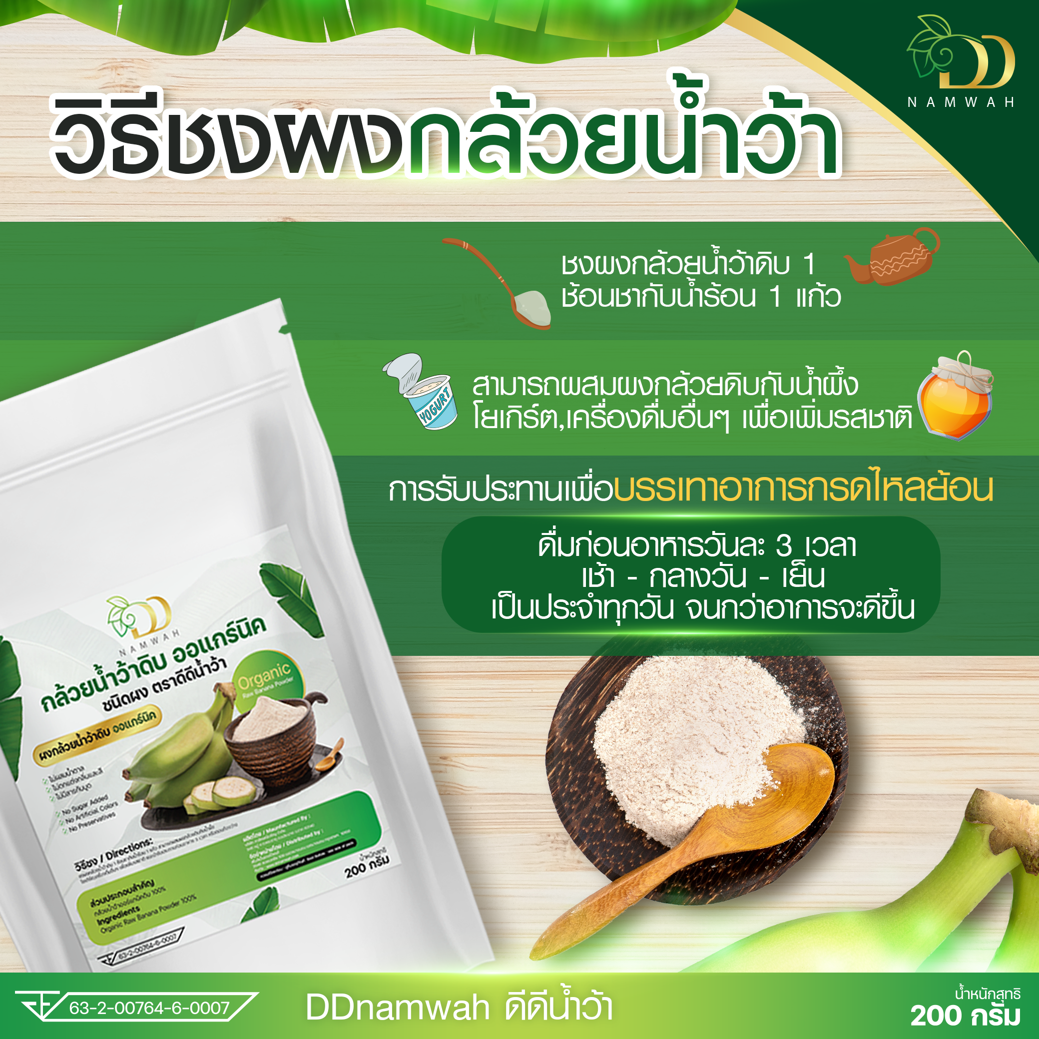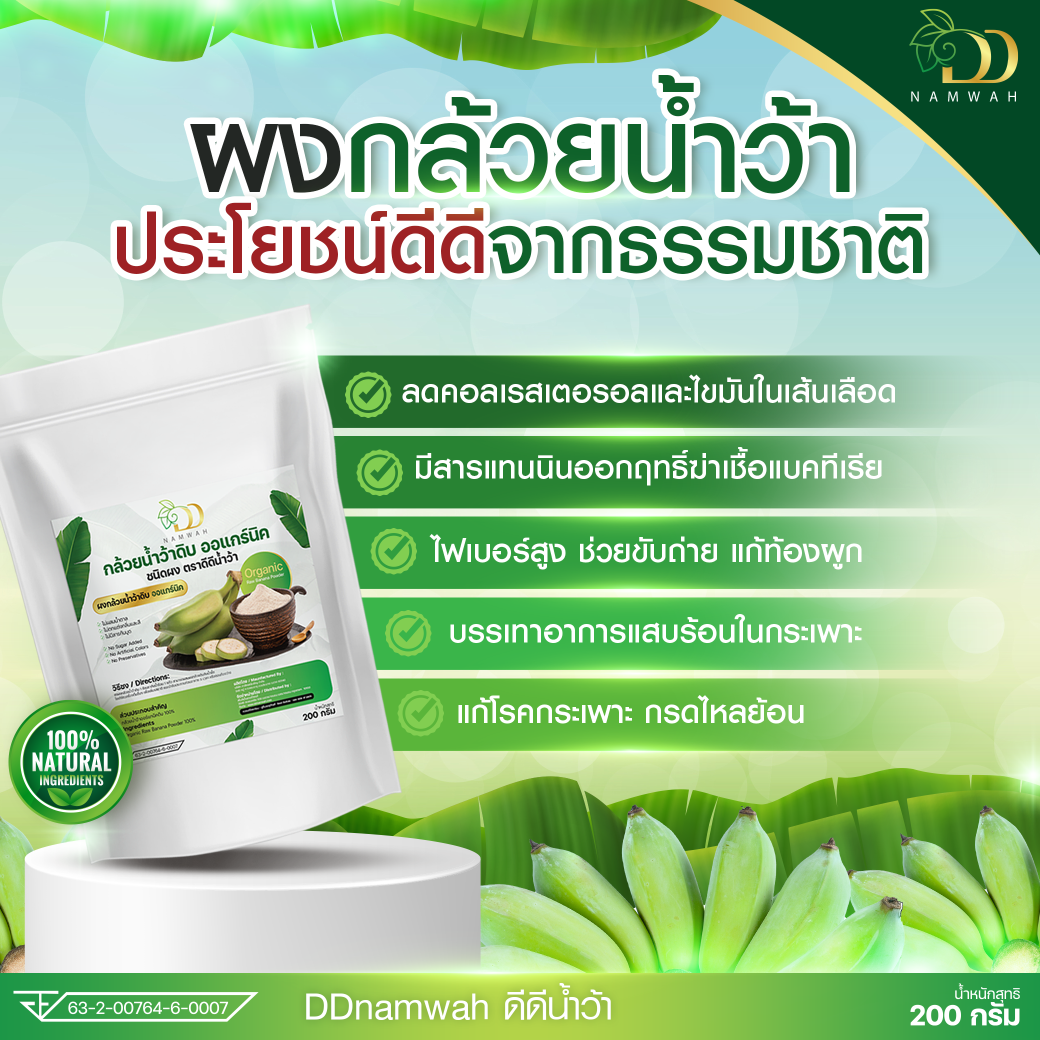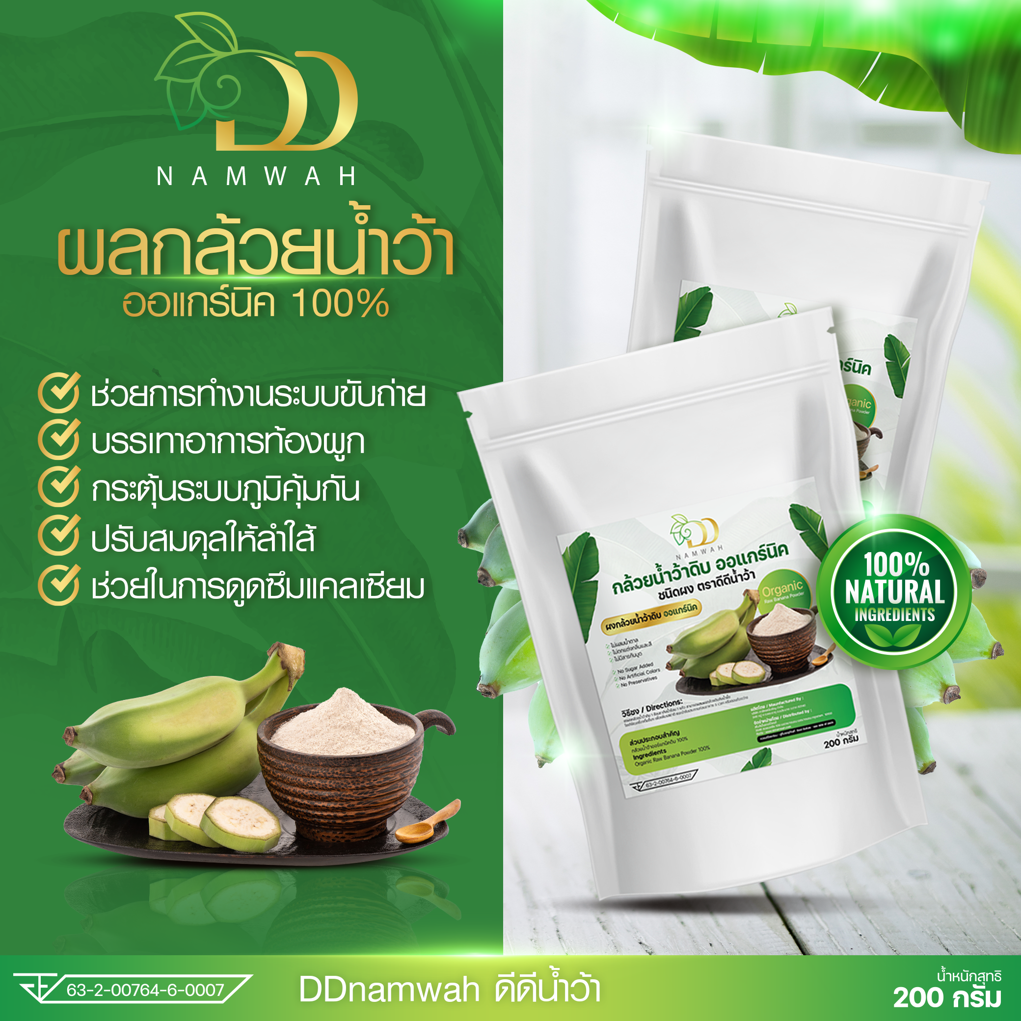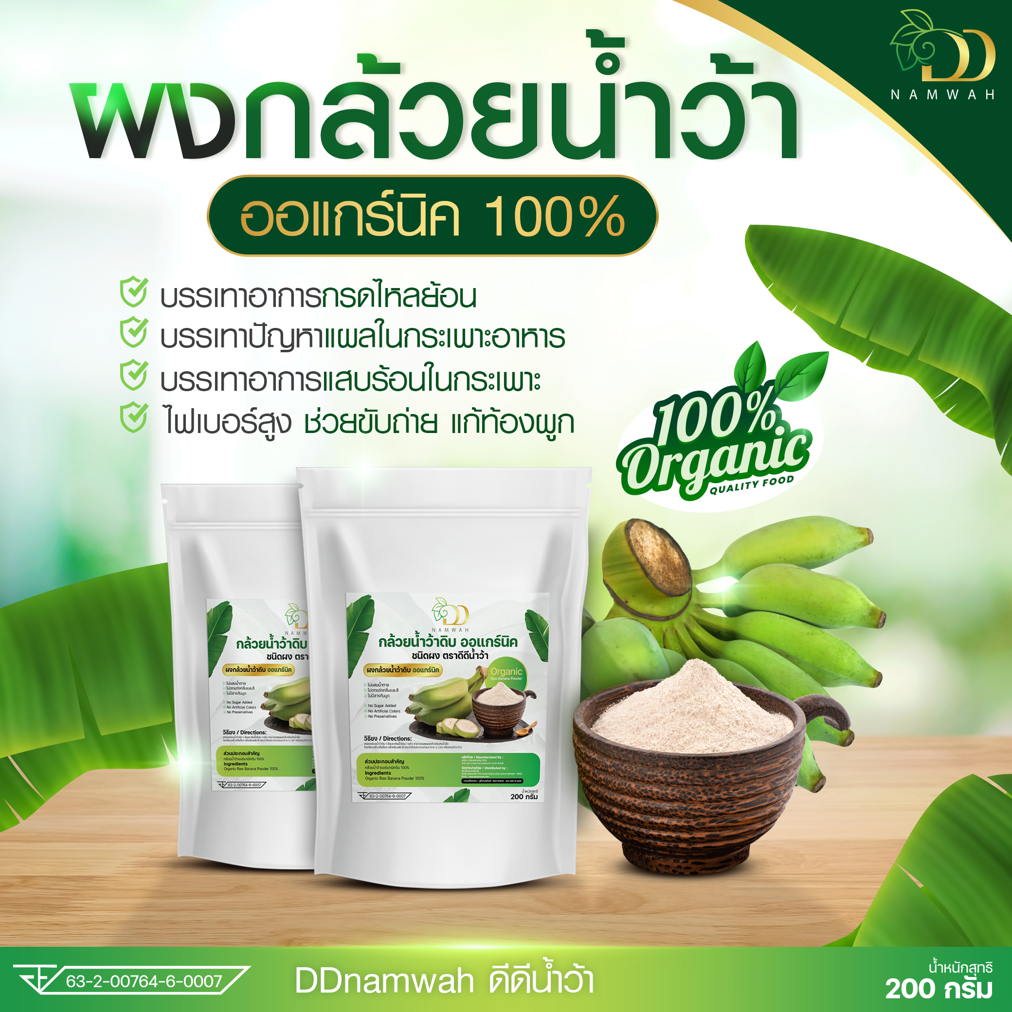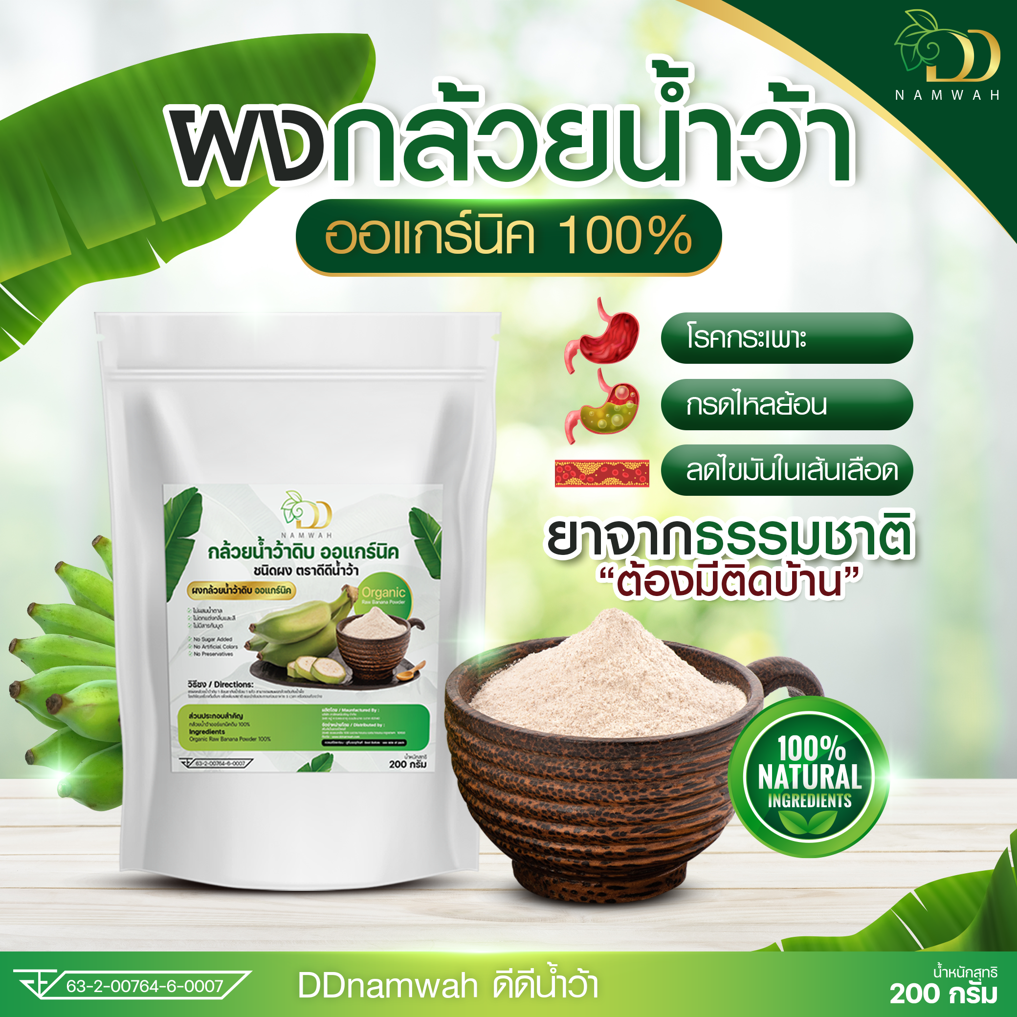 ผงกล้วยน้ำว้าดิบ ออแกร์นิค 100% ตราดีดีน้ำว้า เพื่อสุขภาพที่ดีรักษาด้วยยาจากธรรมชาติ