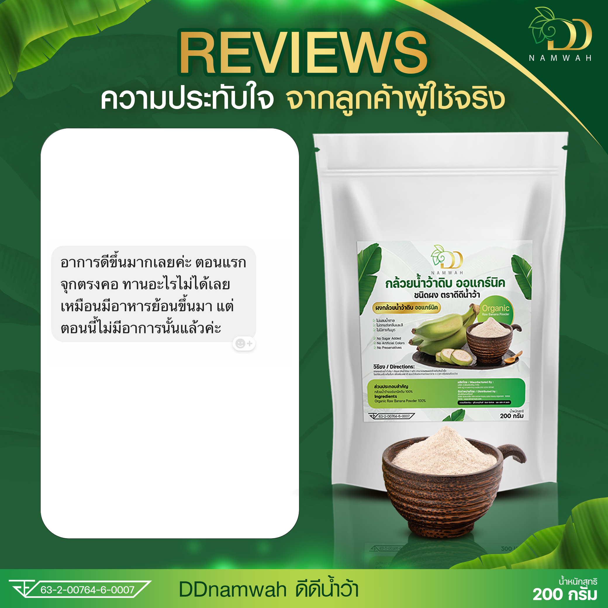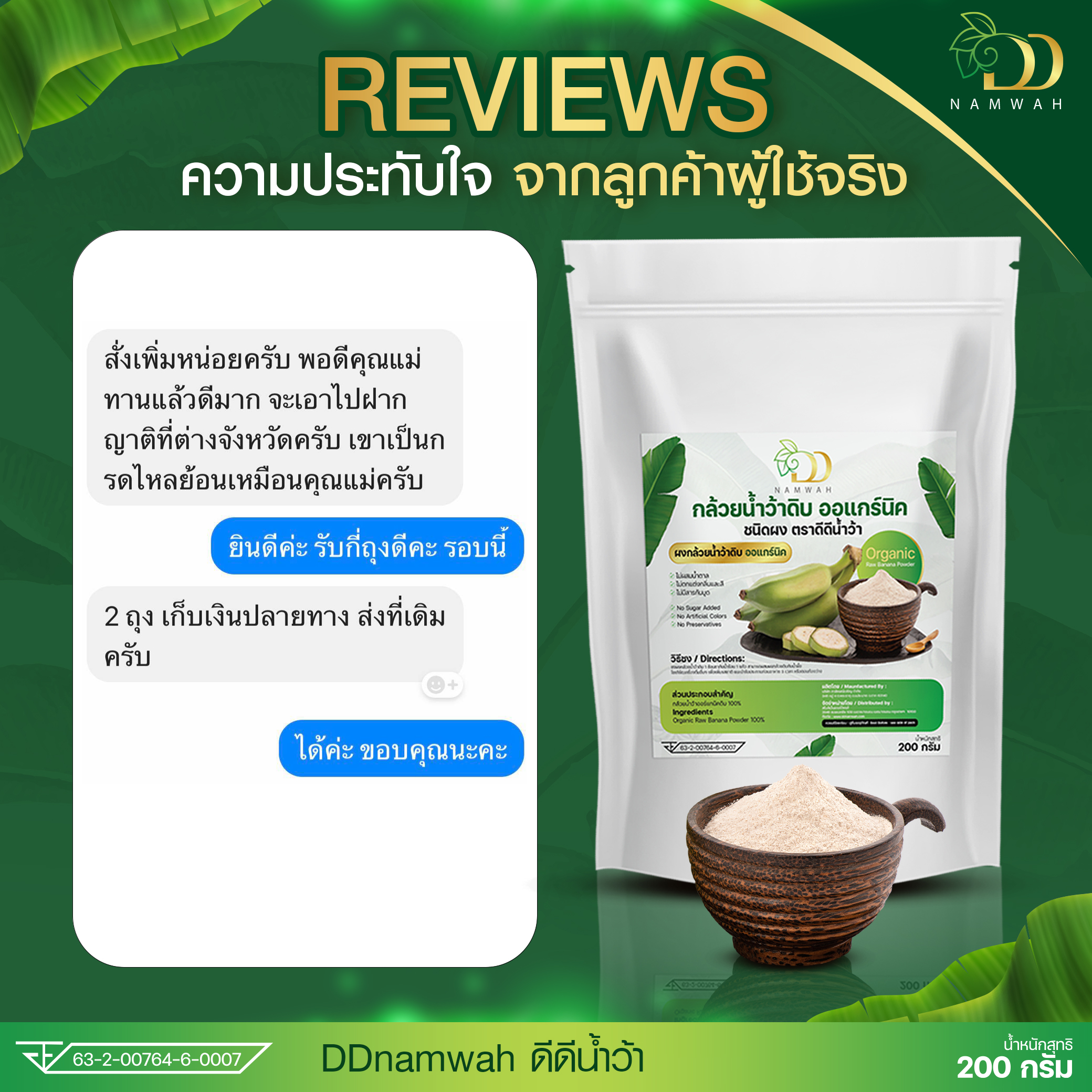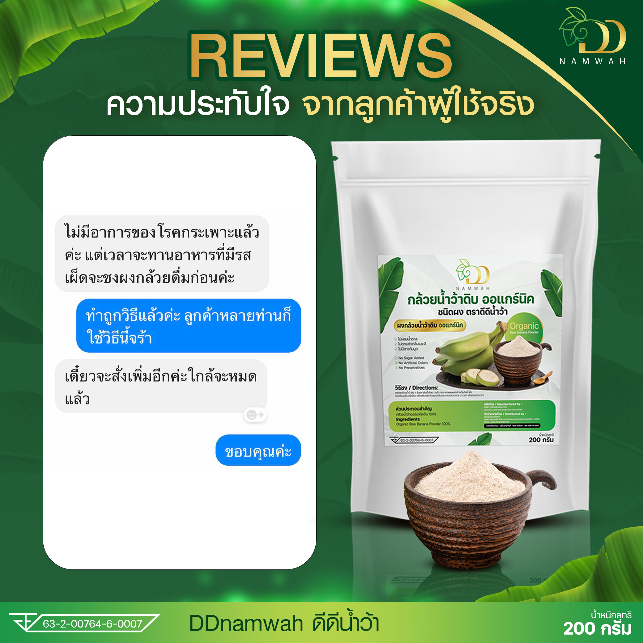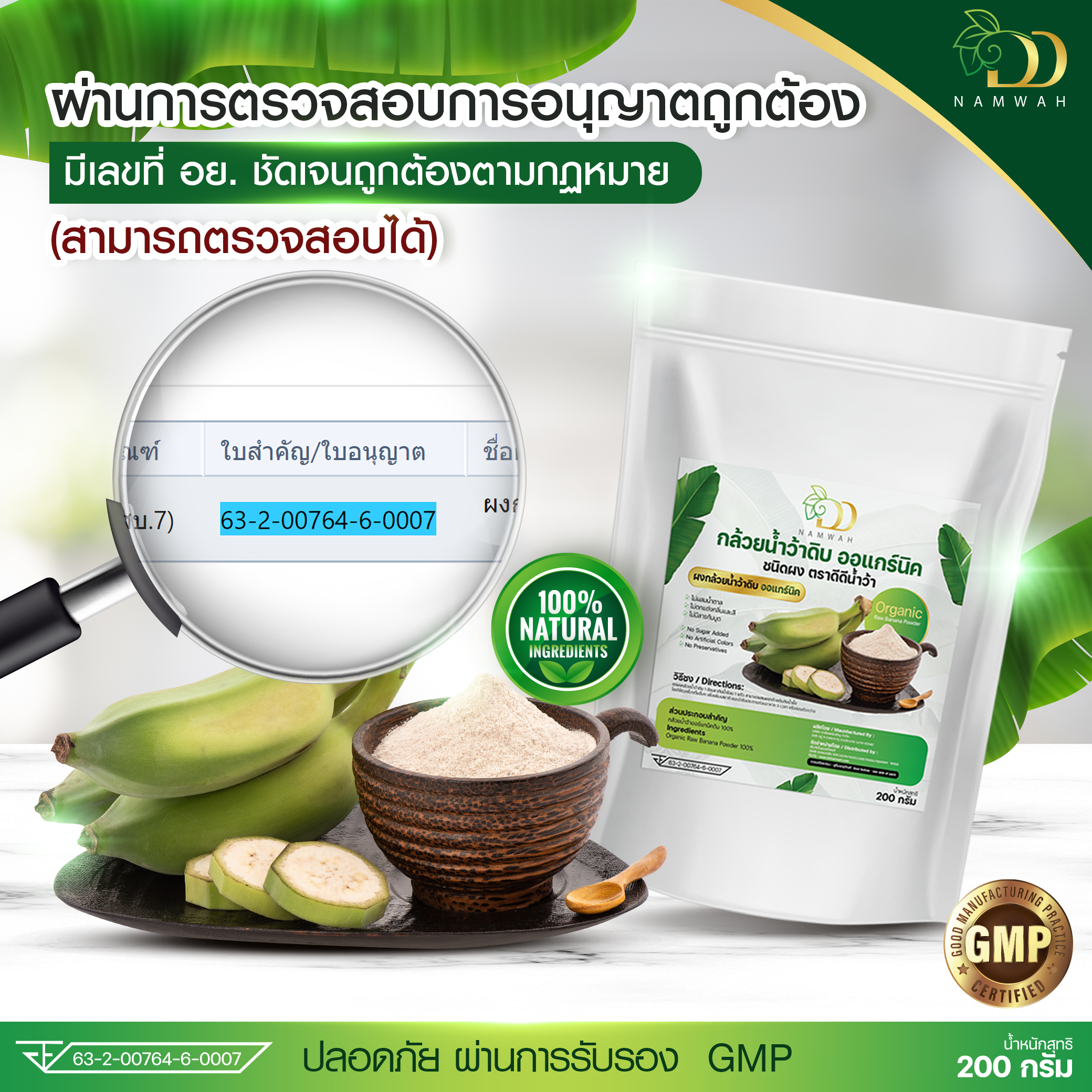 ผงกล้วยน้ำว้าดิบ ออแกร์นิค 100% ตราดีดีน้ำว้า เพื่อสุขภาพที่ดีรักษาด้วยยาจากธรรมชาติ