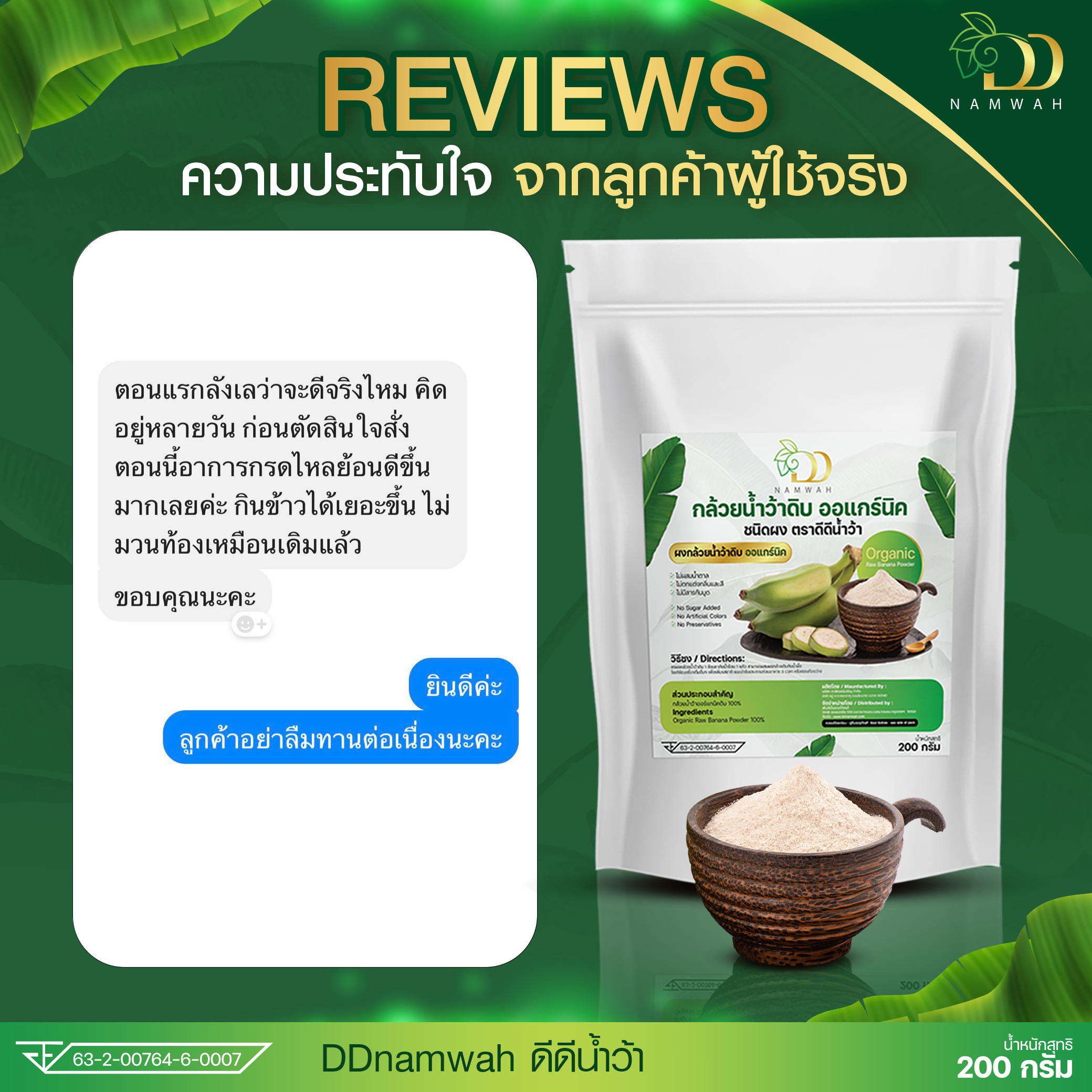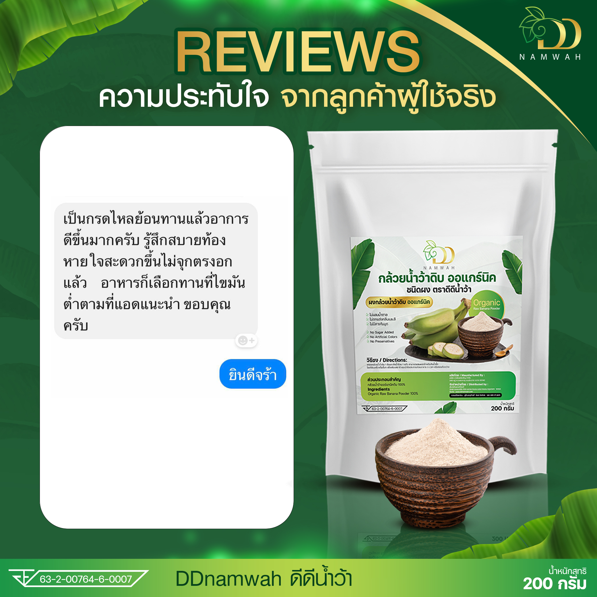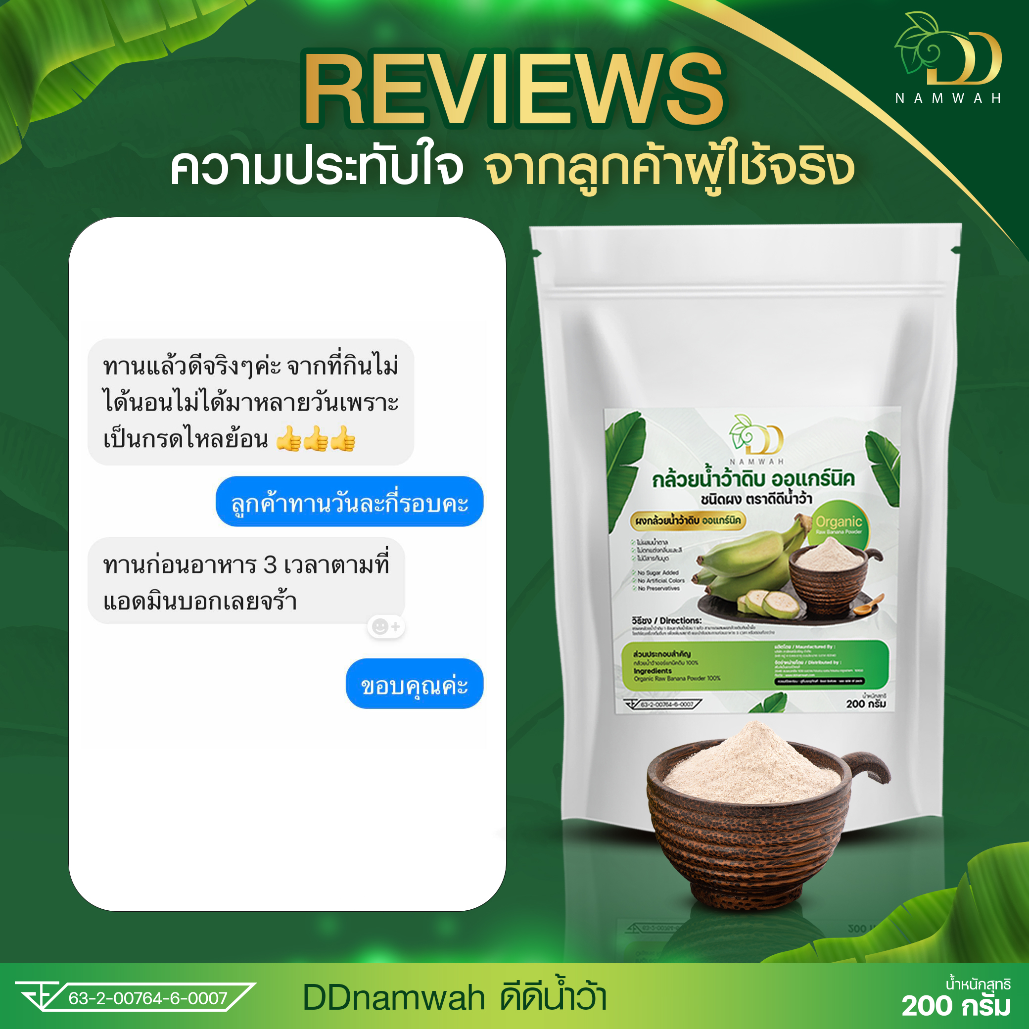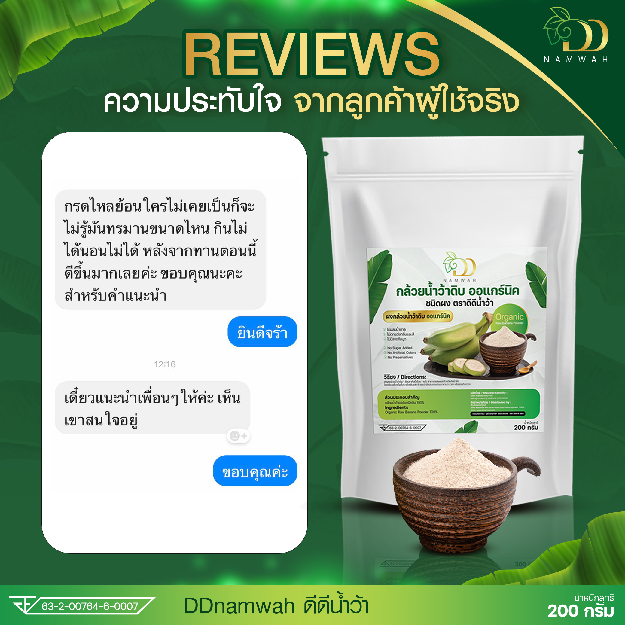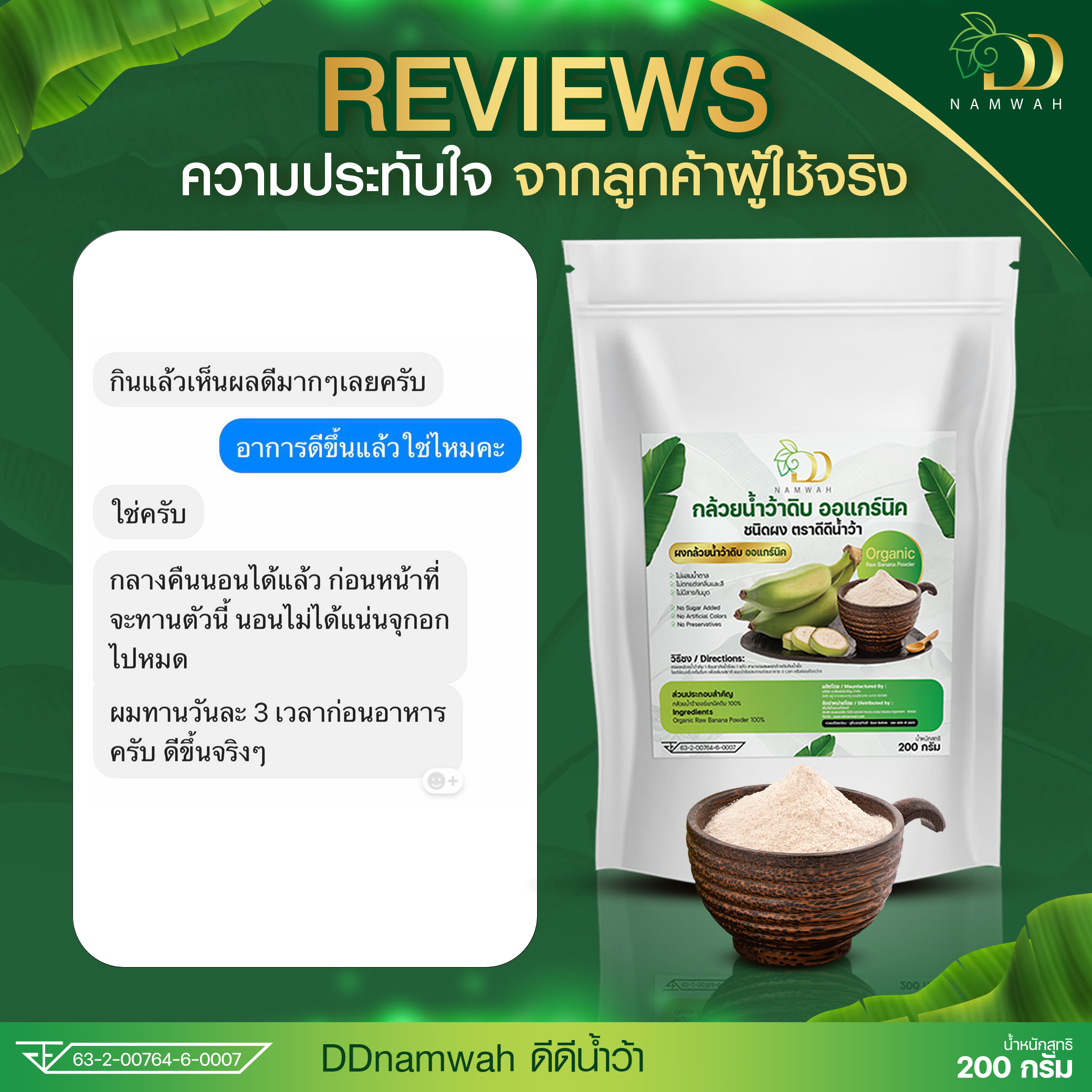 ผงกล้วยน้ำว้าดิบ ออแกร์นิค 100% ตราดีดีน้ำว้า เพื่อสุขภาพที่ดีรักษาด้วยยาจากธรรมชาติ